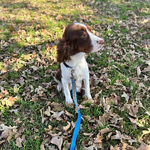 Zella is the newest member of the family! She has an excellent temperament and beautiful markings. Weighing about 25 pounds she is on the smaller side for a springer but she makes up for it in spunk!
